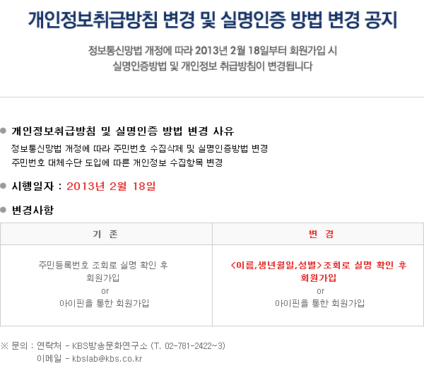 [KBS국민패널] 개인정보취급방침 변경 및 실명인증 방법 변경 공지